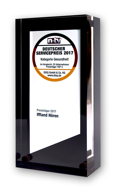 Dieses Ziel und die Zufriedenheit unserer Kunden befähigt uns zu immer neuen Maßstäben in der Hörgeräteversorgung. Regelmäßige Schulungen und Weiterbildungen unserer Mitarbeiter sind zentraler Bestandteil für eine kompetente Beratung und Anpassung. Für unseren überdurchschnittlichen Service wurden wir vom Deutschen Institut für Servicequalität ausgezeichnet.