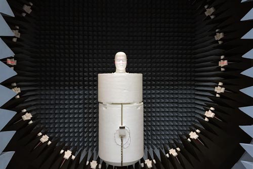 In der Kammer selbst wird die Abstrahlung der Antennen gemessen und bewertet. Damit können Aussagen über eine stabile Funk-Verbindung zwischen Hörsystem und dem Smartphone getroffen werden. Letzteres mit möglichst geringem Stromverbrauch.