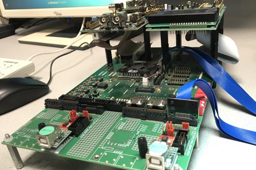 Hier lag auch mal der heutige Nx Chip. „Ist schon ein wenig her“ erklärt Georg Gottschalk lächelnd. Er ist für das Chip-Design zuständig. Diese Prototypen haben circa eine DIN A5-Größe. Als Laie erkennt man eine Leiterplatte. Hier werden die späteren „Features“ und Funktionen also entwickelt und zusammengesetzt. Aus der fertig entwickelten Schaltung wird ein miniaturisiertes Chip-Layout angefertigt, in das alle Funktionen auf weniger als 10 Quadratmillimeter „zusammengedampft“ sind. Daraus wird dann später in der Serienproduktion ein sogenannter Wafer. Eine Art runde Platte, auf der viele der Chips platziert sind. Welche Chip-Generation denn nun hier auf dem Tisch liegt, wollte ich wissen. Wie banal diese Frage war, wurde mir erst später bewusst.