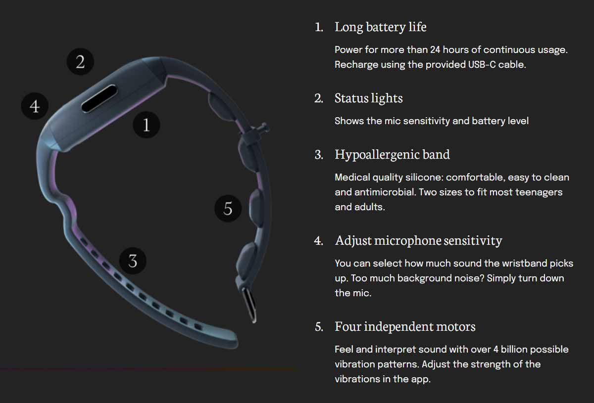 Die US-amerikanische Firma Neosensory hat kein geringeres Ziel, als mit ihrem Armband das klassische Hörgerät zu ersetzen – zumindest beim leichten bis mittleren Hörverlust. „Neosensory Clarify“ sieht aus wie ein handelsübliches Fitness-Armband, aber: Es vibriert, sobald es hochfrequente Töne erfasst.